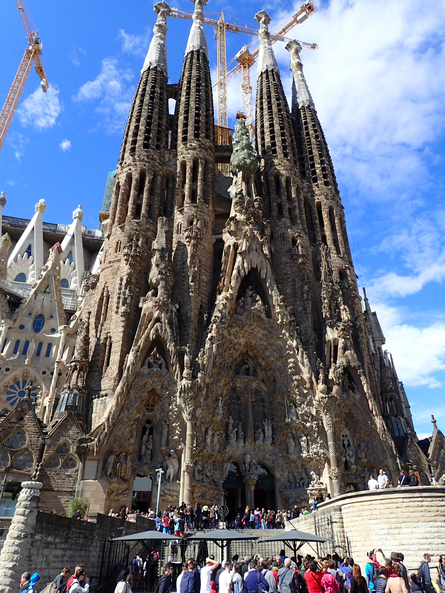 We decided that we would tackle the colossal Roman Catholic Church on our first full day in Barcelona so we headed on over. Not to be suprised. We couldn’t get in. Tickets were sold out for the day, and we were informed that you must book online. So it was another exterior view of the church for me but only for now. We have purchased our online tickets and will make our way back to the church tomorrow for our 12:30p.m. admission time and I will finally get to see the inside.